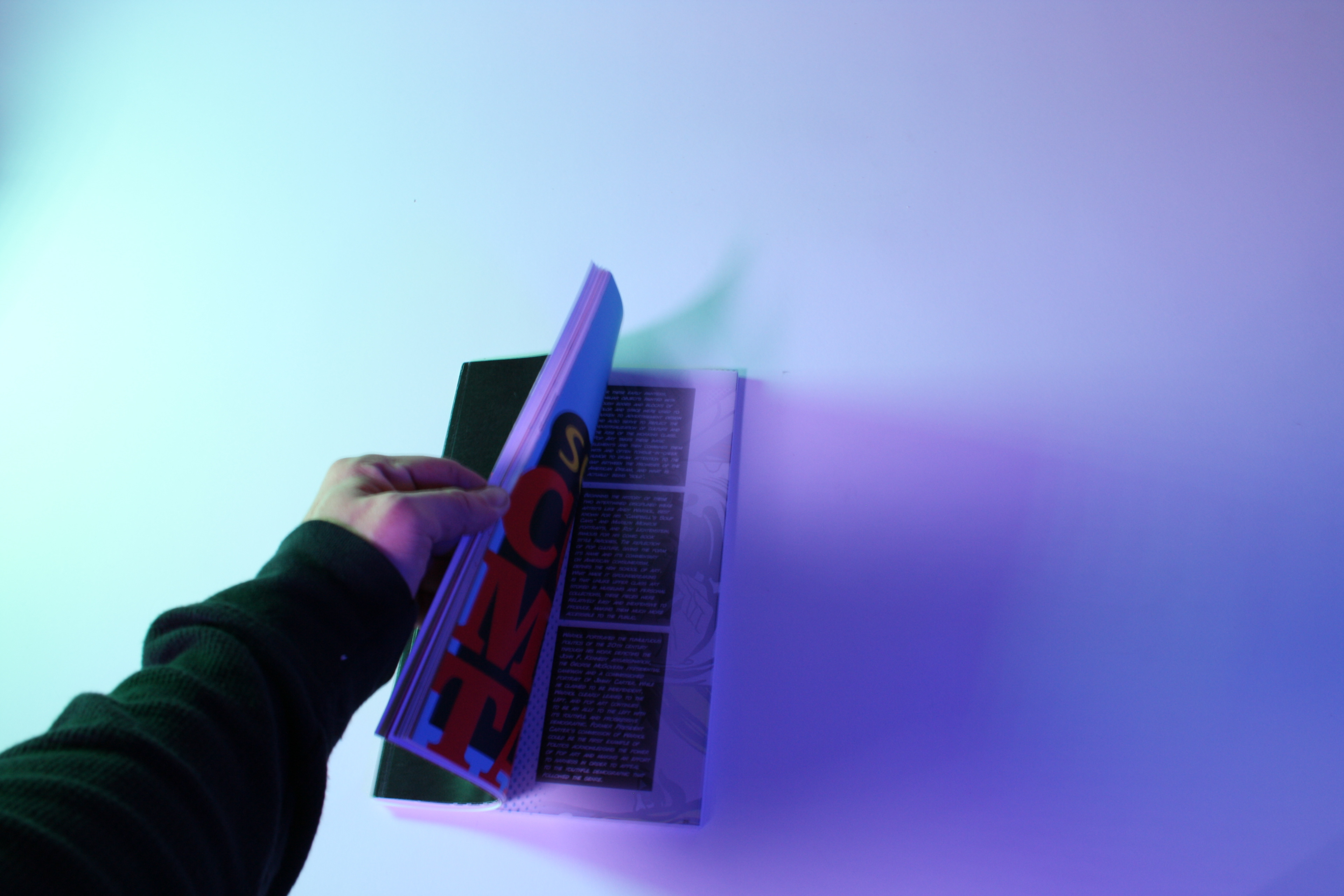 The heart of this publication is a practice in long-form typesetting, print production, and researching an artistic movement. I collected an arsenal of articles, journals, imagery, and op-eds about influential artists, typefaces, and the cultural significance of the Pop Art Movement. This publication is the amalgamation of curated imagery, text, and design elements. Comic books are kinda my thing so, I wanted to have this publication have the look and feel of a comic book I would've liked to read when I was just a little kid.